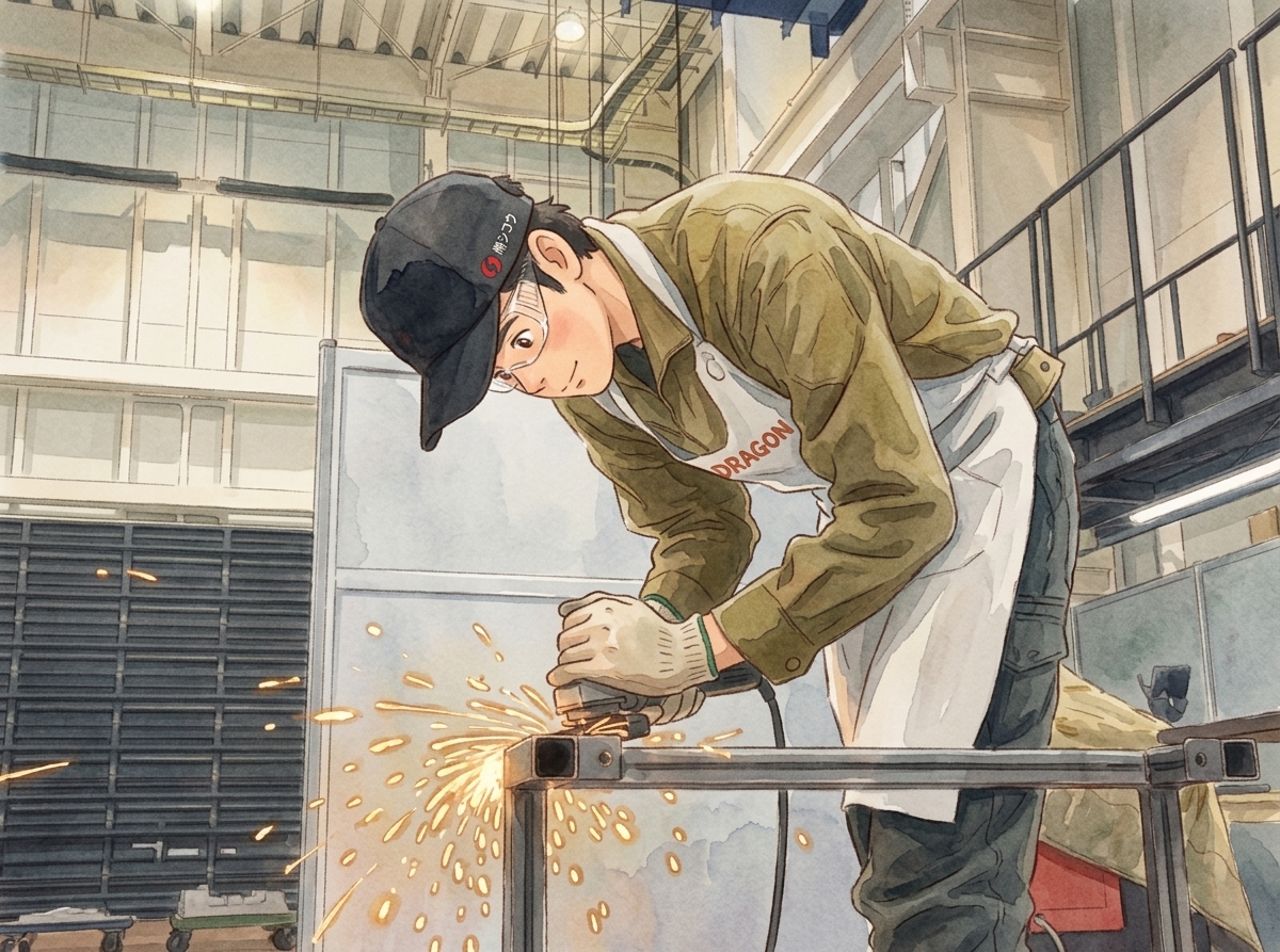 - 板金課での仕事は、材料の計算から鉄の加工から完成までライン作業ではなく全ての工程を一貫して自分の責任として製作できるので、 工夫や試行錯誤を行うことができ、「やりがい」「責任感」を強く実感できます。